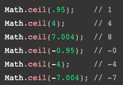 2) Math.celi( ) - 주어진 숫자보다 크거나 같은 숫자 중 가장 작은 숫자를 integer 로 반환한다.