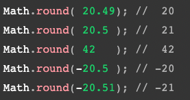 3) Math.round( ) - 함수는 입력값을 반올림한 수와 가장 가까운 정수 값을 반환한다.